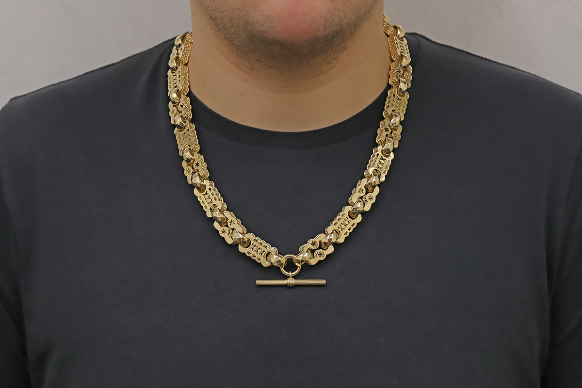 We design and manufacture all of our heavy gold chains in-house at our Hatton Garden gold outlet. Made from the most premium yellow gold alloy, here is a selection of the best-selling men’s chains. Contact us for a bespoke design or special request.