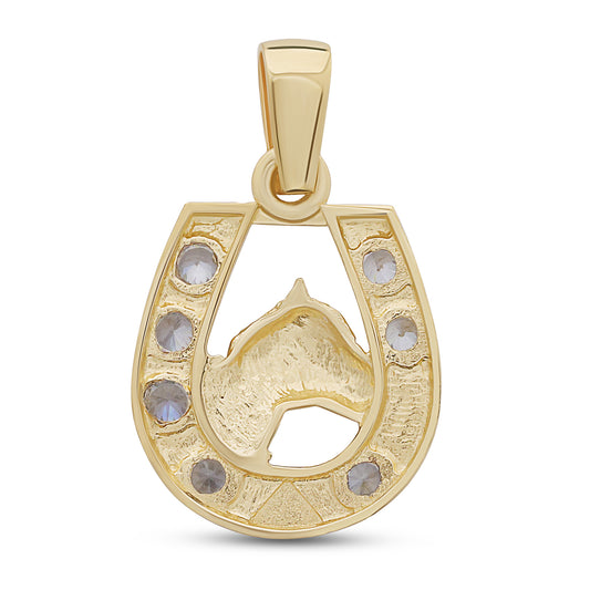 9ct Yellow Gold Gem Set Large Horseshoe Pendant