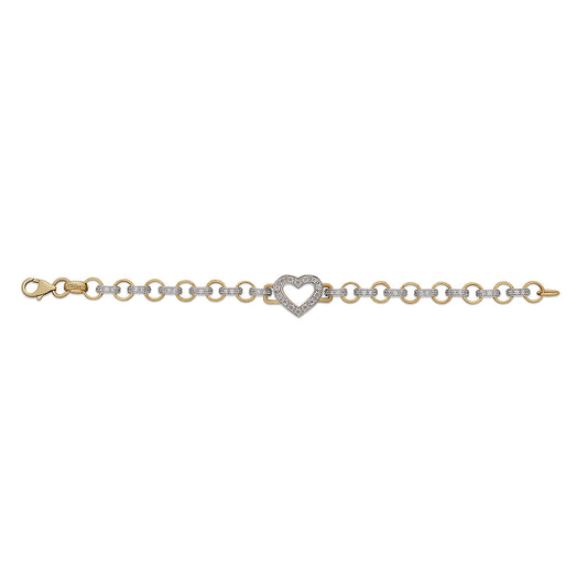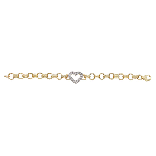 9ct Yellow Single Heart Gemset Belcher Polished Link Bracelet-6.5"