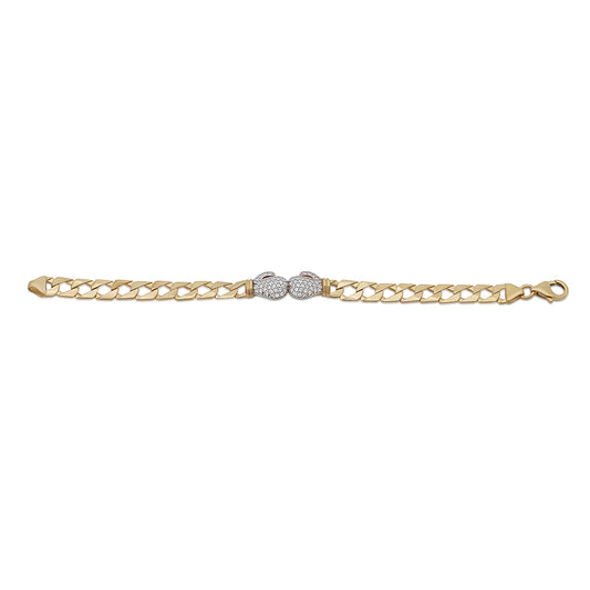 9ct Yellow Gold Gemset Boxing Glove Curb Link Bracelet-6.5"