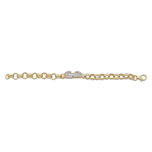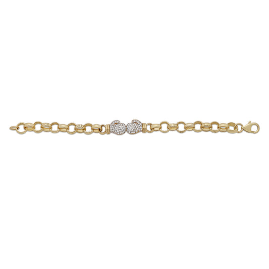 9ct Yellow Gold Gemset Boxing Glove Belcher Link Bracelet-6.5"