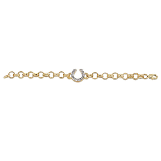 9ct Yellow Gold Gemset Horseshoe Belcher Bracelet-6.5"