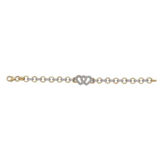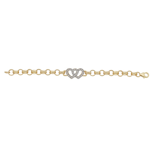 9ct Yellow Gold Gemset Double Heart Belcher Bracelet-6.5"