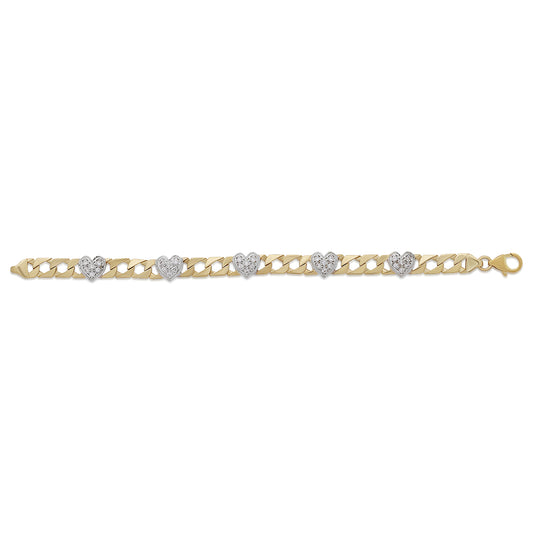 9ct Yellow Gold Five Gemset Heart Bracelet