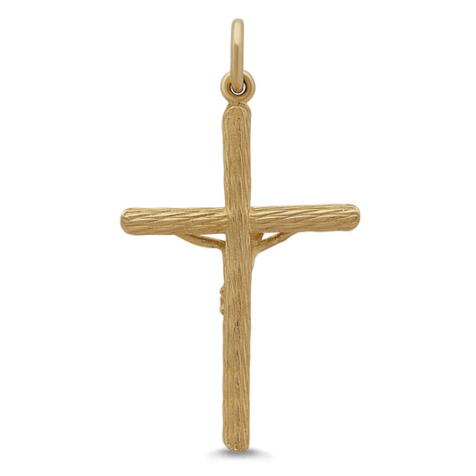 9ct Yellow Gold Solid Textured Crucifix Cross