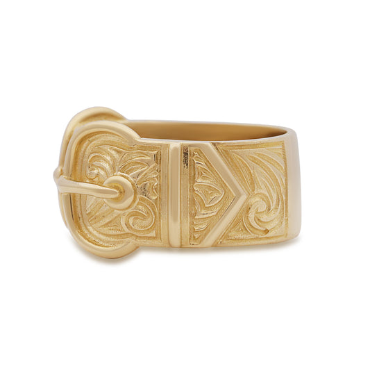9ct Yellow Gold Single Buckle Scroll Patterned Buckle Ring