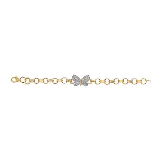 9ct Yellow Gold Gem-Set Butterfly Belcher Link Bracelet-6.5"