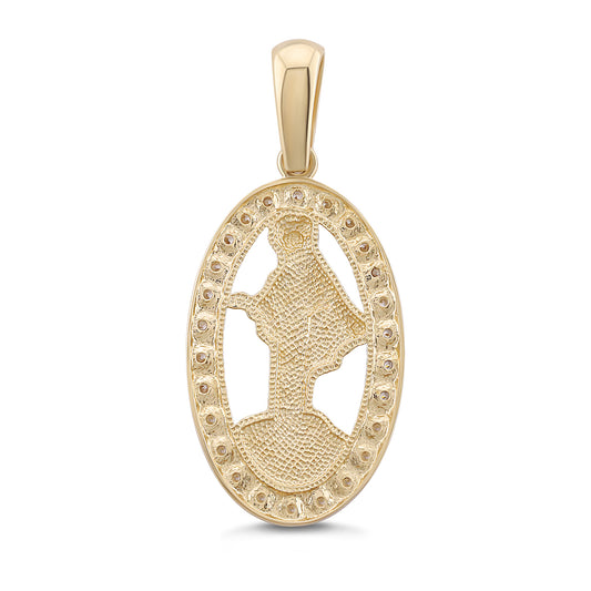 9ct Yellow Gold Oval Gem-Set Holy Mary Pendant