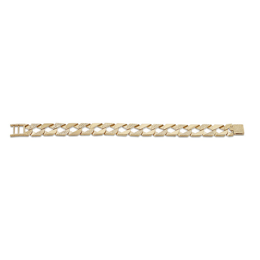 9ct Yellow Gold Textured Square Curb 13mm Bracelet -8.5"