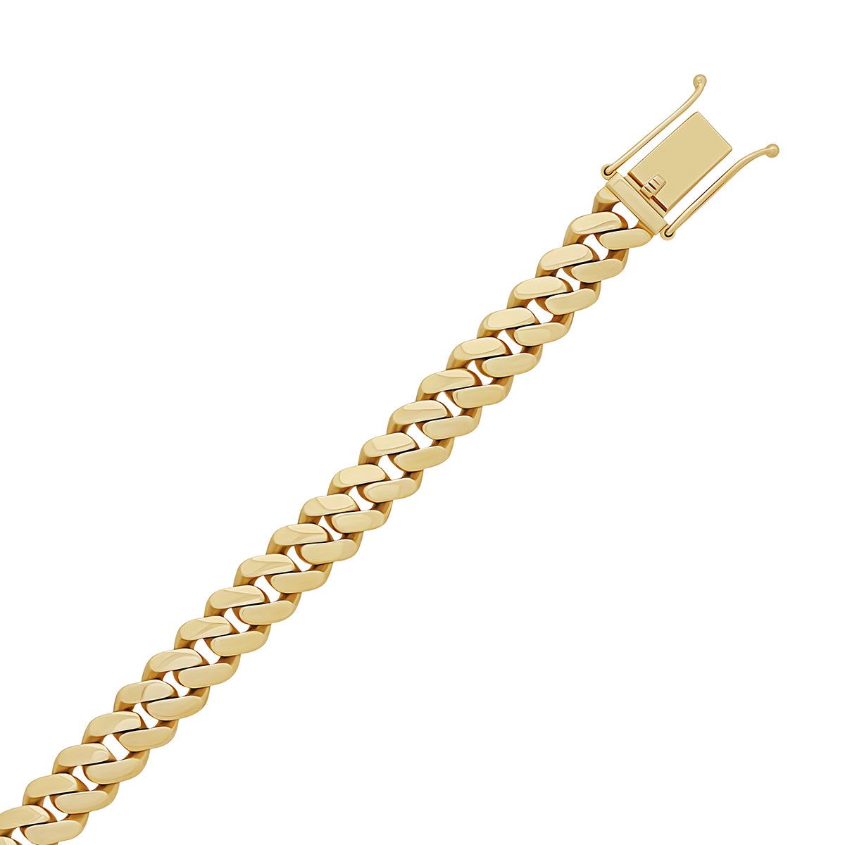 | Our classic and most popular design! We have handcrafted and designed a Cuban link bracelet crafted from 9ct yellow gold featuring perfectly aligned plain polished links finished with our classic box clasp. The item is stamped with a British Hallmark. |